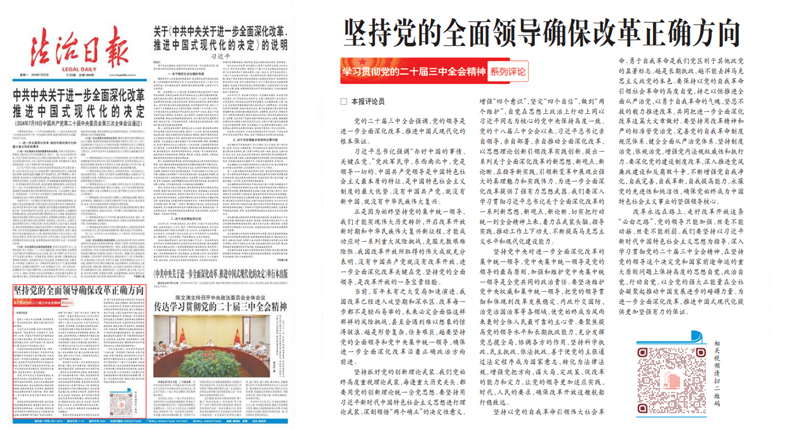黨的二十屆三中全會強(qiáng)調(diào),黨的領(lǐng)導(dǎo)是進(jìn)一步全面深化改革、推進(jìn)中國式現(xiàn)代化的根本保證。