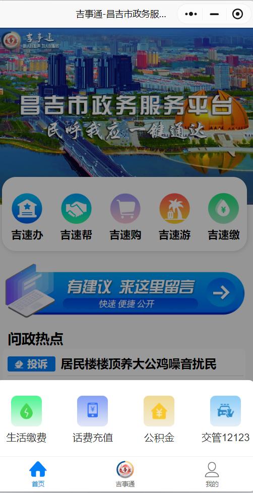為進一步做好群眾工作,健全完善接訴即辦工作機制,聚焦居民訴求“小切口”,暢通民生訴求路徑,搭建黨委、政府與廣大人民群眾的“連心橋”,新疆昌吉市近日推出“吉事通”政務(wù)服務(wù)平臺,推動民意上網(wǎng)、服務(wù)上線,實現(xiàn)群眾與被問政單位的“掌上互動”。