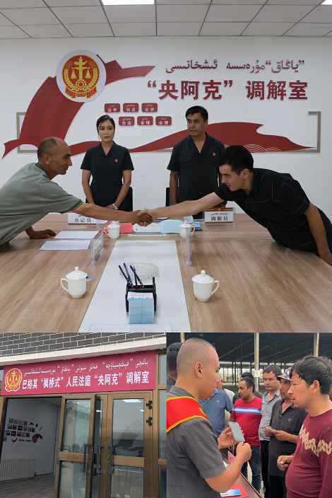 巴格其人民法庭在堅持和發(fā)展新時代楓橋經(jīng)驗的基礎上,打造了“楓橋式”調(diào)解室——“央阿克”調(diào)解室。法庭多批次組織具有法律專業(yè)知識、工作能力強、經(jīng)驗豐富的調(diào)解員到轄區(qū)核桃交易市場,現(xiàn)場解決市場內(nèi)發(fā)生的矛盾糾紛并開展普法宣傳。近日,“近觀楓橋”網(wǎng)絡主題宣傳活動新疆采訪團來到和田縣“央阿克調(diào)解室”,實地探索特色“小法庭”守護果農(nóng)“大民生”的治理密碼。
