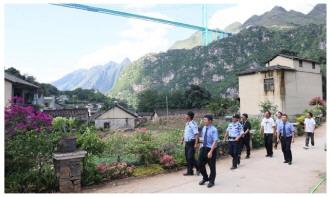 圖為9月29日,貞豐縣人民檢察院檢察官聯(lián)合公安、行政部門工作人員走訪花江峽谷大橋周邊村落。 貞豐縣人民檢察院供圖