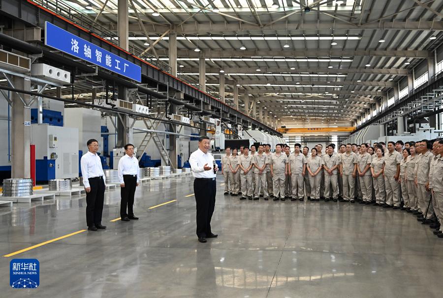 19日下午,習(xí)近平首先來(lái)到洛陽(yáng)軸承集團(tuán)股份有限公司考察。該公司前身為“一五”期間建成的洛陽(yáng)軸承廠。在智能工廠,習(xí)近平了解企業(yè)發(fā)展歷程,聽(tīng)取不同類(lèi)型軸承產(chǎn)品用途和性能介紹,走近生產(chǎn)線察看生產(chǎn)流程。他對(duì)圍攏過(guò)來(lái)的企業(yè)職工說(shuō),制造業(yè)是國(guó)民經(jīng)濟(jì)的重要支柱,推進(jìn)中國(guó)式現(xiàn)代化必須保持制造業(yè)合理比重?,F(xiàn)代制造業(yè)離不開(kāi)科技賦能,要大力加強(qiáng)技術(shù)攻關(guān),走自主創(chuàng)新的發(fā)展路子。他勉勵(lì)職工發(fā)揚(yáng)主人翁精神,在企業(yè)發(fā)展中奮發(fā)有為、多作貢獻(xiàn)。