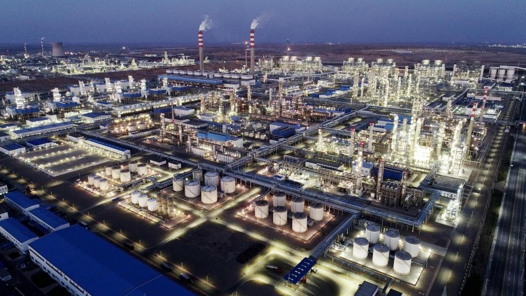 這是國家能源集團寧夏煤業(yè)公司400萬噸煤制油項目夜景(2022年6月22日,無人機照片)。新華社記者 王鵬 攝