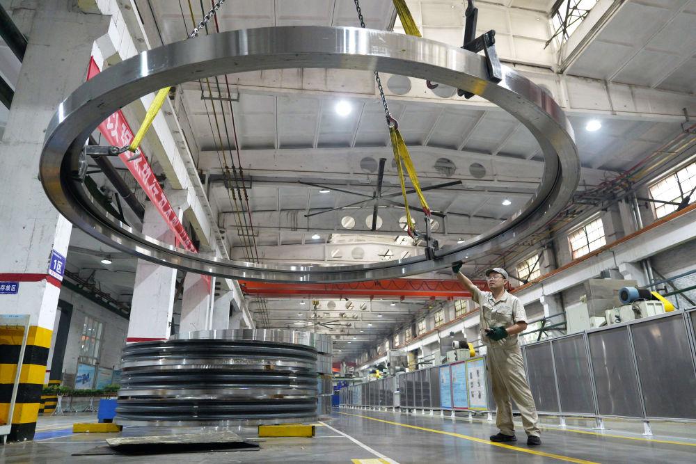 2025年5月22日,工人在位于河南洛陽的洛軸集團風(fēng)電三車間生產(chǎn)線上作業(yè)。新華社記者 李嘉南 攝