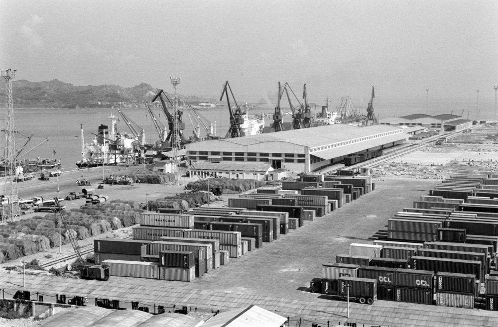 這是廈門(mén)經(jīng)濟(jì)特區(qū)東渡碼頭集裝箱碼頭(1985年攝)。新華社記者 顧新生 攝
