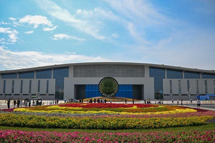 這是2025年9月1日拍攝的天津梅江會(huì)展中心外的花壇。新華社記者 孫凡越 攝