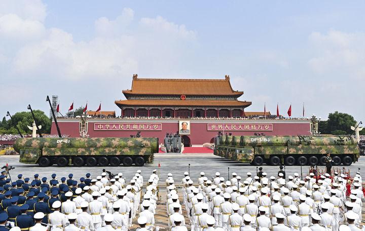 2025年9月3日,紀(jì)念中國(guó)人民抗日戰(zhàn)爭(zhēng)暨世界反法西斯戰(zhàn)爭(zhēng)勝利80周年大會(huì)在北京隆重舉行。這是核導(dǎo)彈第一方隊(duì)通過天安門廣場(chǎng)。新華社記者 李鑫 攝
