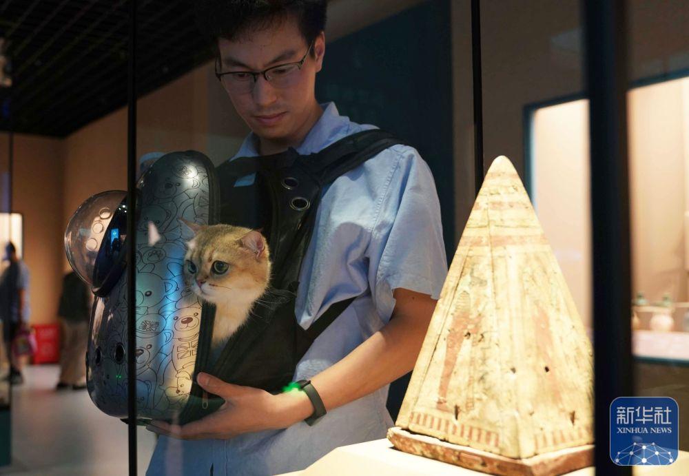 觀眾帶寵物貓看埃及展。新華社記者陳浩明 攝
