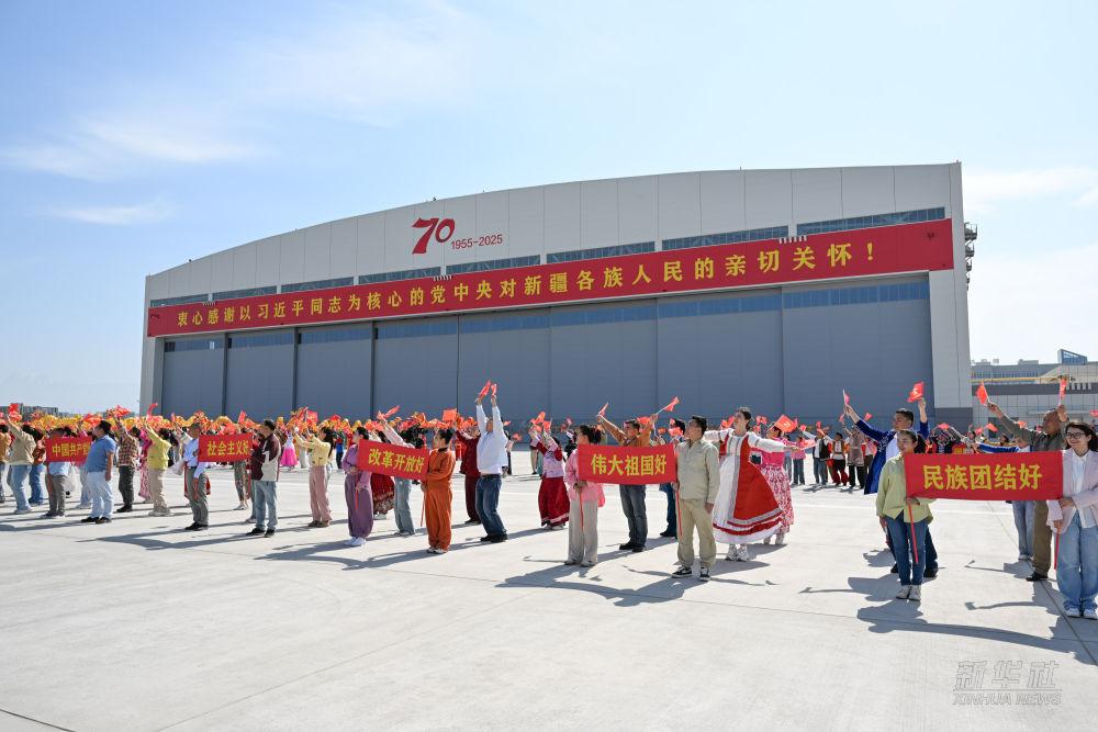 中共中央總書記、國家主席、中央軍委主席習近平率中央代表團23日下午乘專機抵達烏魯木齊,出席新疆維吾爾自治區(qū)成立70周年慶?;顒?。習近平等在機場和烏魯木齊市區(qū)受到新疆各族群眾的熱烈歡迎。