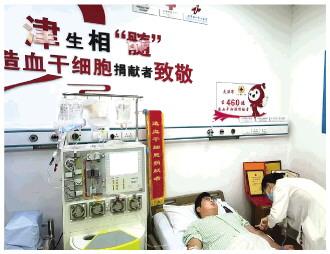 圖為天津市第一中心醫(yī)院醫(yī)護(hù)人員正在對(duì)胡英魁進(jìn)行造血干細(xì)胞采集。