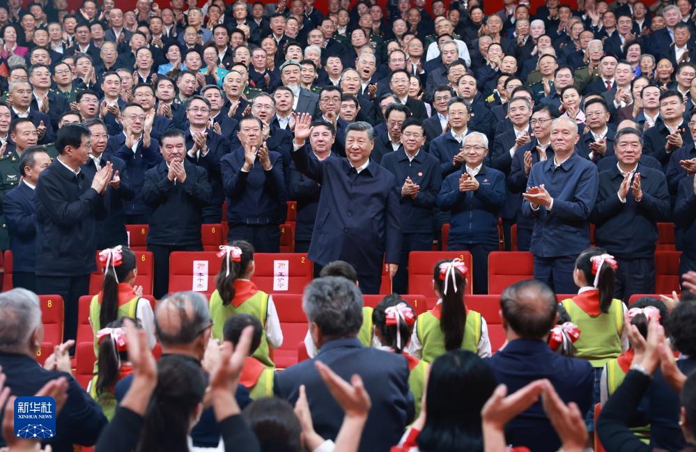 王滬寧、蔡奇、李干杰、何立峰、王小洪、雪克來提·扎克爾、諶貽琴、王東峰和劉振立,在新疆工作過的老同志,以及中央和國家機關(guān)有關(guān)部門負責同志、中央代表團全體成員一同觀看演出。
