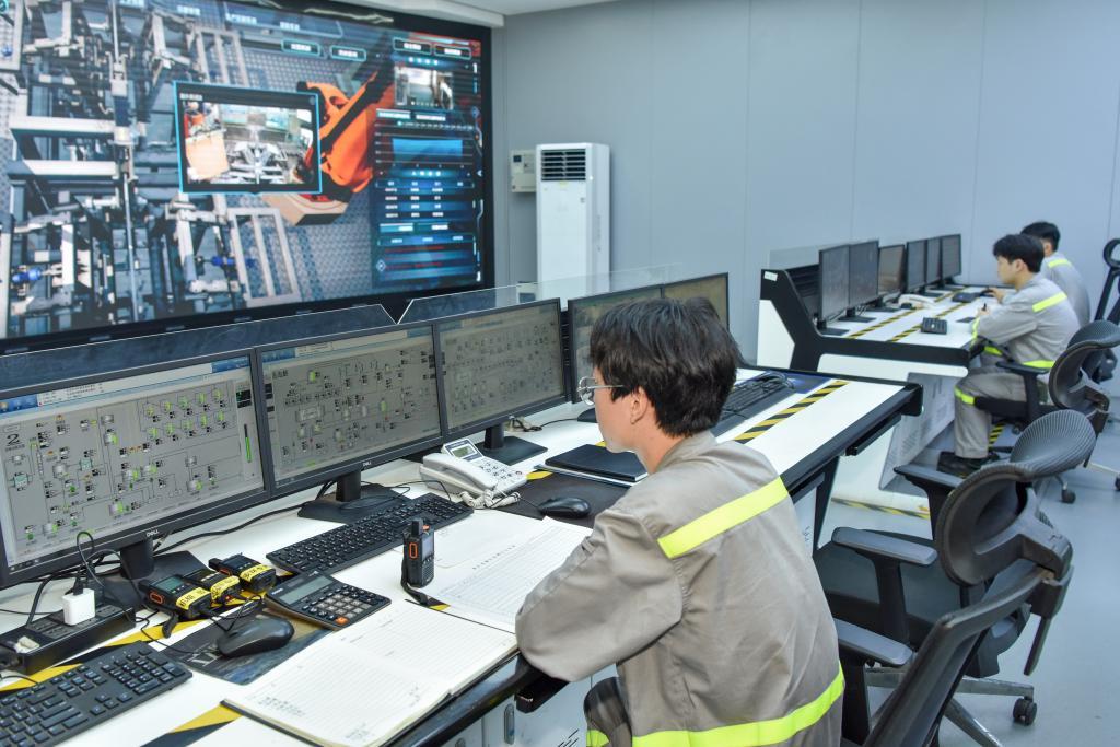8月14日,銅陵有色金冠銅業(yè)分公司奧爐電解車間內(nèi),工作人員正在查看技術(shù)參數(shù)。(儲(chǔ)著傳 攝)