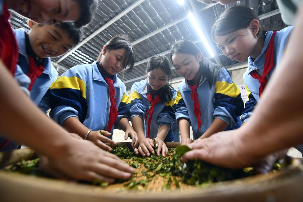 2024年12月3日,學(xué)生們在廣西梧州市蒼梧縣六堡鎮(zhèn)塘平小學(xué)學(xué)習(xí)制作六堡茶。廣西六堡茶已有1500多年的歷史,其制作工藝被列入第四批國家級(jí)非物質(zhì)文化遺產(chǎn)代表性項(xiàng)目名錄。近年來,廣西圍繞打造千億元茶產(chǎn)業(yè)發(fā)展目標(biāo),深入實(shí)施綠色高效茶園建設(shè)、品牌提升和營銷體系建設(shè)、產(chǎn)業(yè)融合和茶文化提升等多項(xiàng)工程,形成了以六堡茶為引擎,早春茶等特色優(yōu)勢茶協(xié)同發(fā)展的產(chǎn)業(yè)格局,茶產(chǎn)業(yè)煥發(fā)勃勃生機(jī)。六堡茶正沿21世紀(jì)海上絲綢之路運(yùn)達(dá)八方,香飄海內(nèi)外。2024年,廣西六堡茶產(chǎn)量達(dá)到4.3萬噸,綜合產(chǎn)值超300億元。