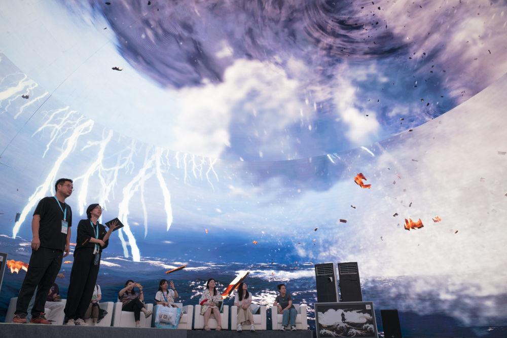 2025年9月12日,觀眾在2025中國文化旅游產(chǎn)業(yè)博覽會(huì)上參觀多業(yè)態(tài)文旅球幕。當(dāng)日,2025中國文化旅游產(chǎn)業(yè)博覽會(huì)在武漢開幕,本次博覽會(huì)以“深化文旅融合 暢享美好生活”為主題,融合“展、演、銷、游”四大功能。室外展區(qū)展示以“河山添錦繡”為主題的文旅IP花車矩陣,室內(nèi)展館集中展現(xiàn)文旅新業(yè)態(tài)、新場景、新產(chǎn)品,涵蓋數(shù)字集群、智能導(dǎo)覽、低空文旅、非遺文創(chuàng)等方面,吸引了國內(nèi)2000余家展商以及50家海外旅行商參展。