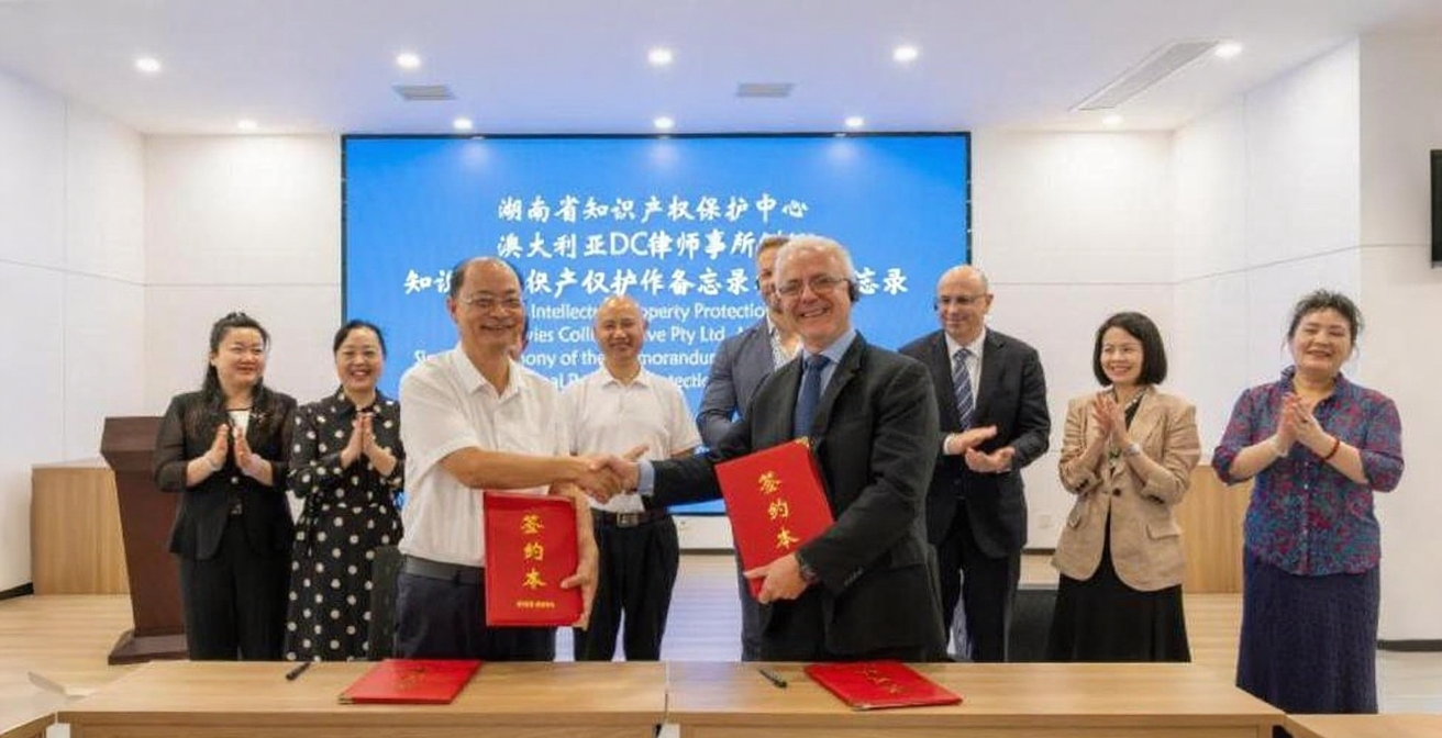 9月2日,湖南省知識產(chǎn)權保護中心、長沙知識產(chǎn)權保護中心與澳大利亞DCC律師事務所簽訂知識產(chǎn)權保護合作備忘錄,并聯(lián)合開展涉外知識產(chǎn)權保護交流分享活動。湖南省市場監(jiān)督管理局(知識產(chǎn)權局)二級巡視員何愛文出席活動。