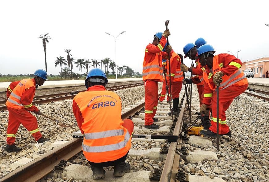 8月2日,在安哥拉洛比托鐵路項(xiàng)目現(xiàn)場(chǎng),中國(guó)中鐵二十局本格拉鐵路項(xiàng)目員工在進(jìn)行鐵路維護(hù)。新華社發(fā)(柳志攝)