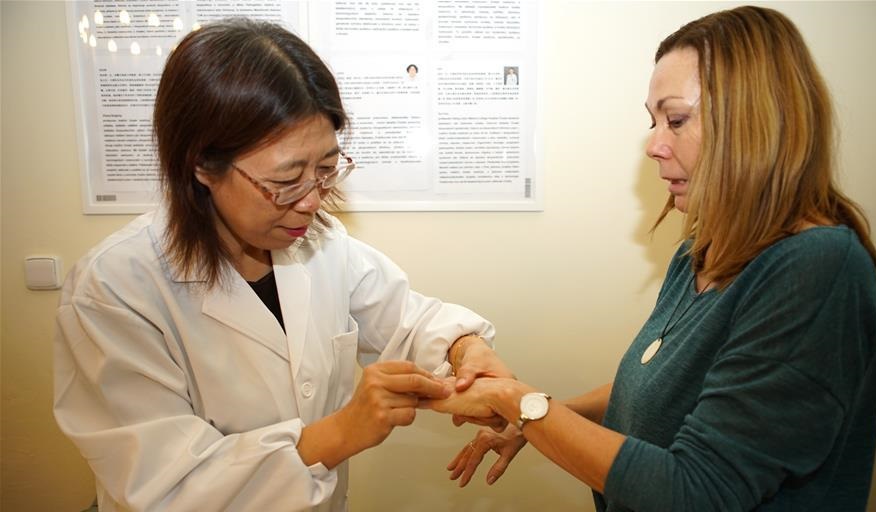 11月18日,在捷克首都布拉格,中醫(yī)專家在為患者診療。新華社發(fā)(達(dá)娜·科什奈洛娃攝)