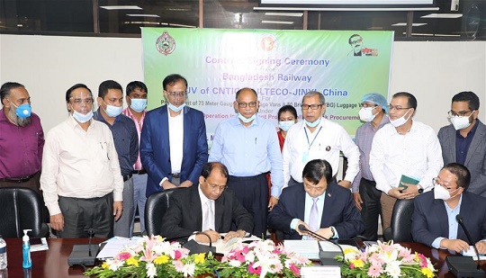 孟加拉國(guó)鐵道部長(zhǎng)努如爾·伊斯拉姆·蘇簡(jiǎn)及中孟嘉賓參加了8月31日的簽約儀式。中國(guó)技術(shù)進(jìn)出口集團(tuán)有限公司(簡(jiǎn)稱中技公司)代表中技聯(lián)合體簽署合同。