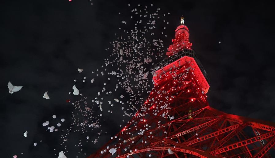 這是2020年1月24日在日本東京拍攝的亮起“中國紅”的東京塔。當(dāng)日,日本東京地標(biāo)建筑東京塔為慶祝中國農(nóng)歷新年,亮起特別的“中國紅”。