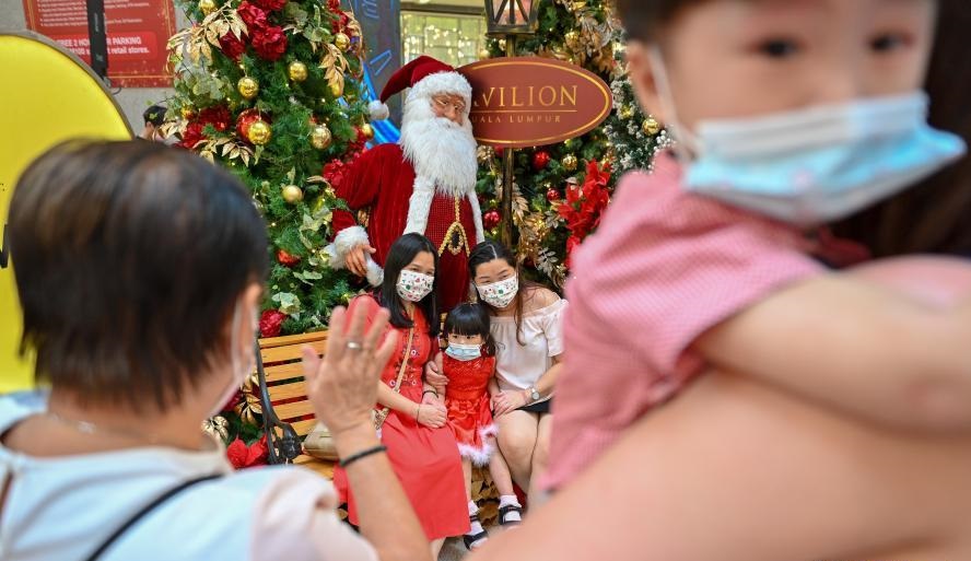 12月24日,在馬來西亞吉隆坡,人們戴著口罩逛商場。