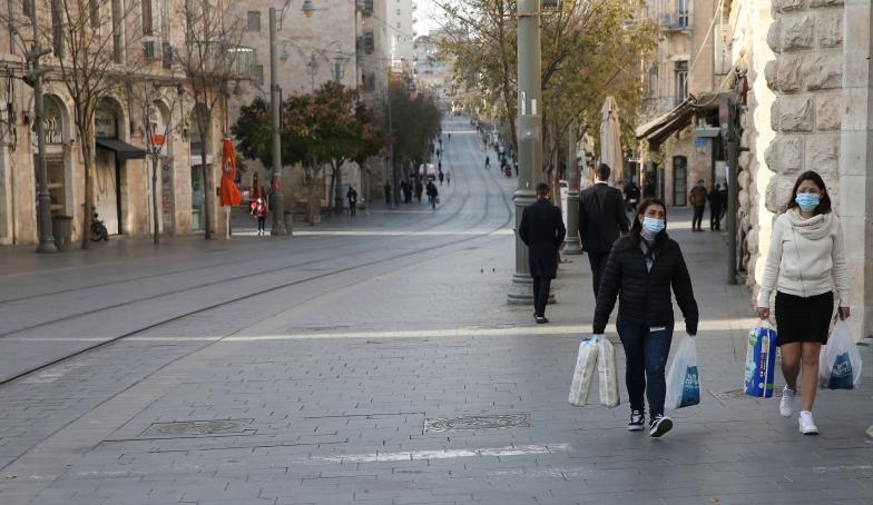 12月28日,人們拎著購物袋走在耶路撒冷空蕩的街道上。