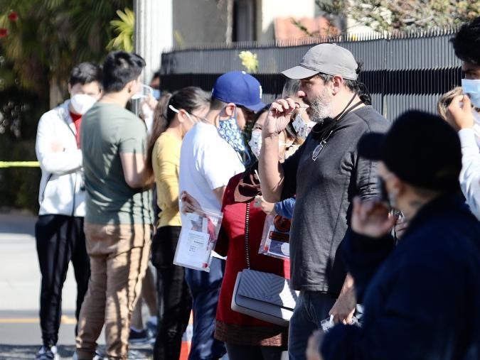 1月9日,在美國加利福尼亞州洛杉磯縣圣加布里埃爾的一處自助新冠病毒檢測站,人們從口中獲取檢測樣本。新華社發(fā)