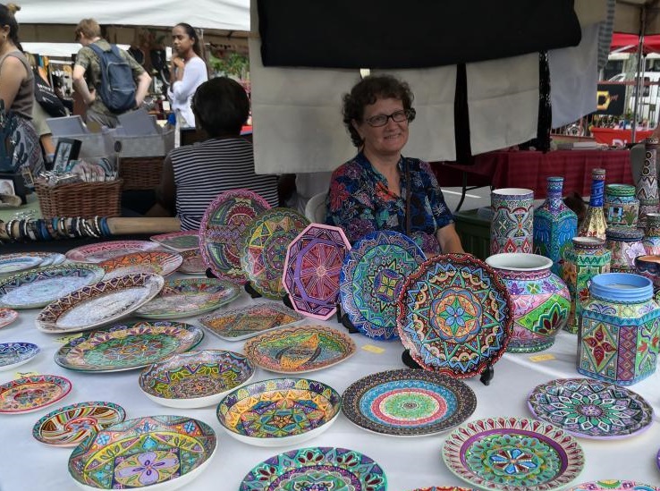 這是1月17日在斐濟首都蘇瓦的周末市場上拍攝的一名賣手工藝品的攤販。