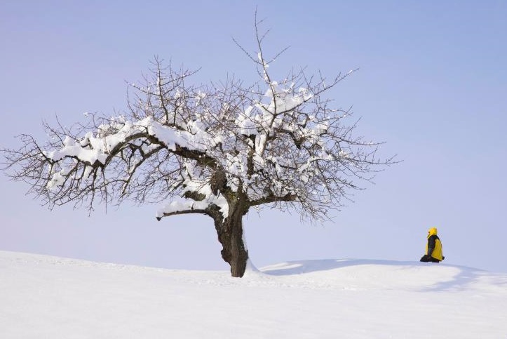 1月16日,在法國上萊茵省弗雷朗,一名男子走在雪后的山坡上。新華社發(fā)(亞基·內(nèi)熱朗攝)