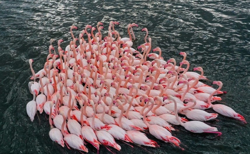 土耳其火烈鳥成群結(jié)隊水中暢游