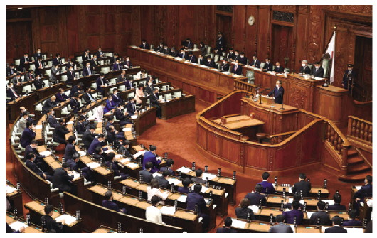 當(dāng)?shù)貢r(shí)間1月18日,日本東京,日本第204屆例行國會(huì)開幕。日本首相菅義偉發(fā)表施政演說。 CFP供圖