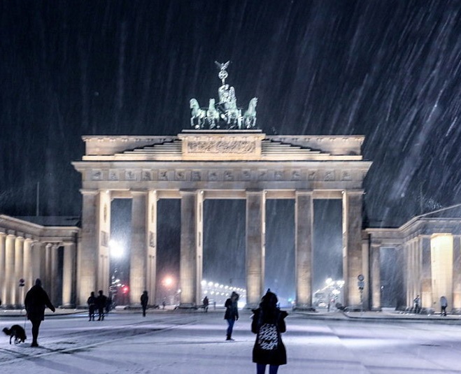 人民網(wǎng)訊 當(dāng)?shù)貢r(shí)間2021年1月29日,德國柏林大雪紛飛,勃蘭登堡門廣場被冰雪覆蓋。