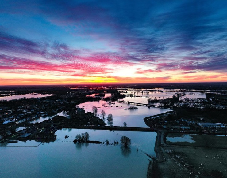 英國劍橋天空現火紅晚霞