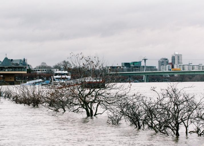 德國萊茵河受降雨影響水位上漲