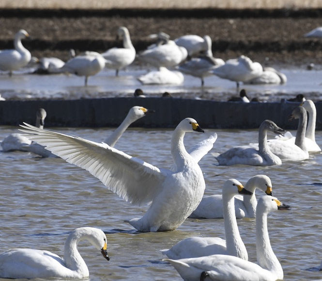 美麗的白天鵝遷徙到日本千葉縣過冬