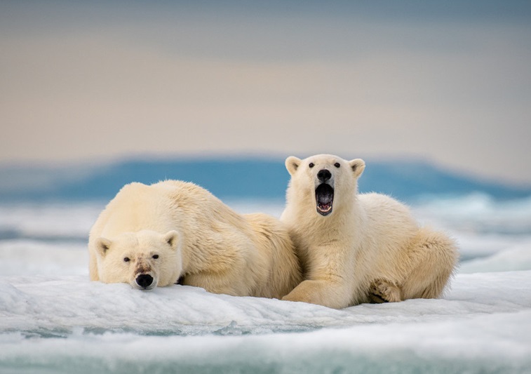 畫面溫馨!北極熊媽媽和幼崽相互依偎享受美好親子時光
