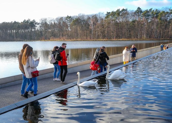 比利時林堡省波克萊克附近有一條200多米長、從水塘中間穿過的特別通道。人們走在其中時視線剛好與水面齊平,宛如在水中穿行。這一獨特的體驗吸引了眾多徒步和騎行愛好者。