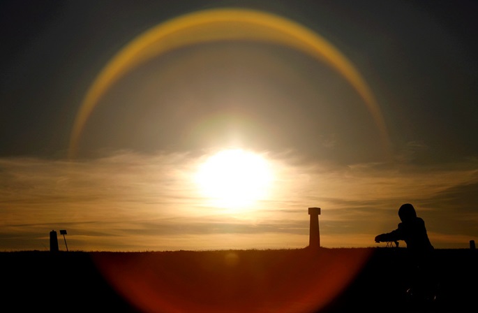 當(dāng)?shù)貢r(shí)間3月2日,拉脫維亞薩拉斯皮爾斯,道加瓦河沿岸的日落風(fēng)光,美如畫卷。(圖片來(lái)源:東方IC)