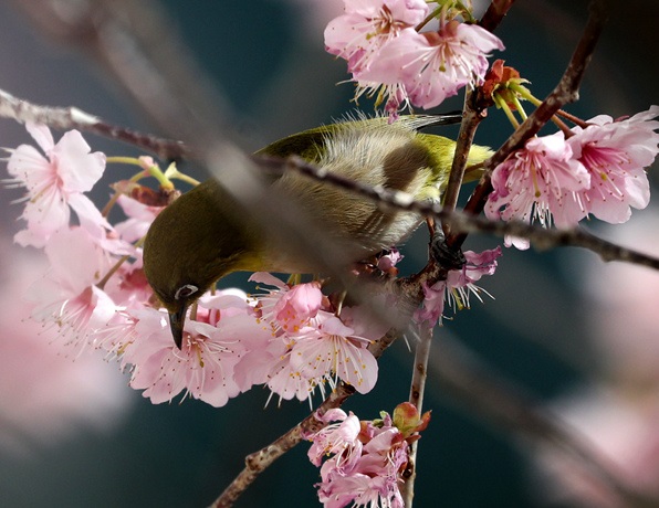 當(dāng)?shù)貢r間3月3日,韓國釜山,當(dāng)?shù)貦鸦ㄊ㈤_,鳥兒棲息在枝頭“聞香識花”。(圖片來源:東方IC)