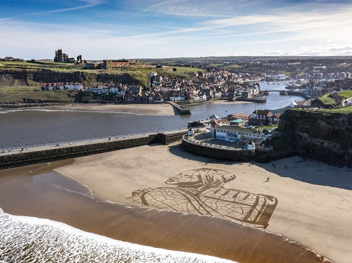 人民網(wǎng)訊 當(dāng)?shù)貢r(shí)間3月15日,英國惠特比,在世界水日來臨之前,水援助組織在惠特比海灘的沙灘上創(chuàng)作了一幅畫,畫中的孩子在漲潮的潮水旁提水,以強(qiáng)調(diào)氣候變化對(duì)人們獲取水的影響。