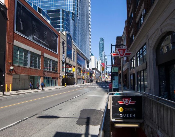 這是在加拿大安大略省多倫多拍攝的市中心街頭(4月8日攝)。