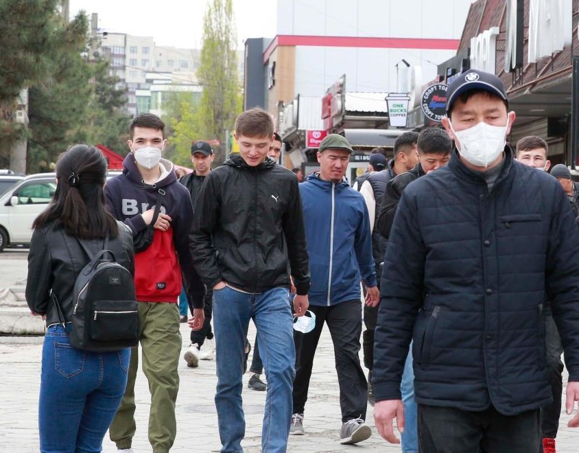 4月19日,市民在吉爾吉斯斯坦首都比什凱克街頭行走。