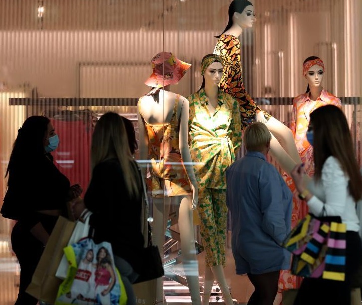 4月19日,顧客在葡萄牙首都里斯本一家重新開放的購物中心購物。