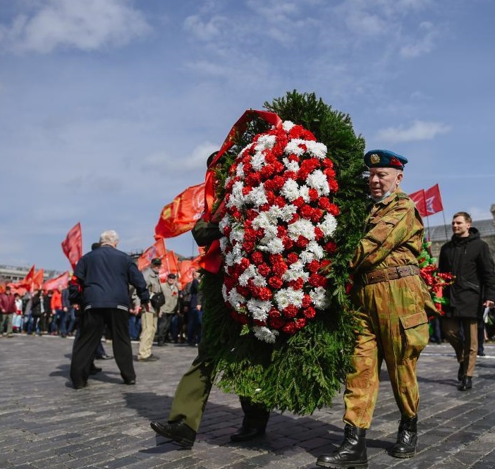 當(dāng)天,人們到俄羅斯首都莫斯科紅場的列寧墓前獻(xiàn)花,紀(jì)念無產(chǎn)階級(jí)革命家列寧誕辰151周年。