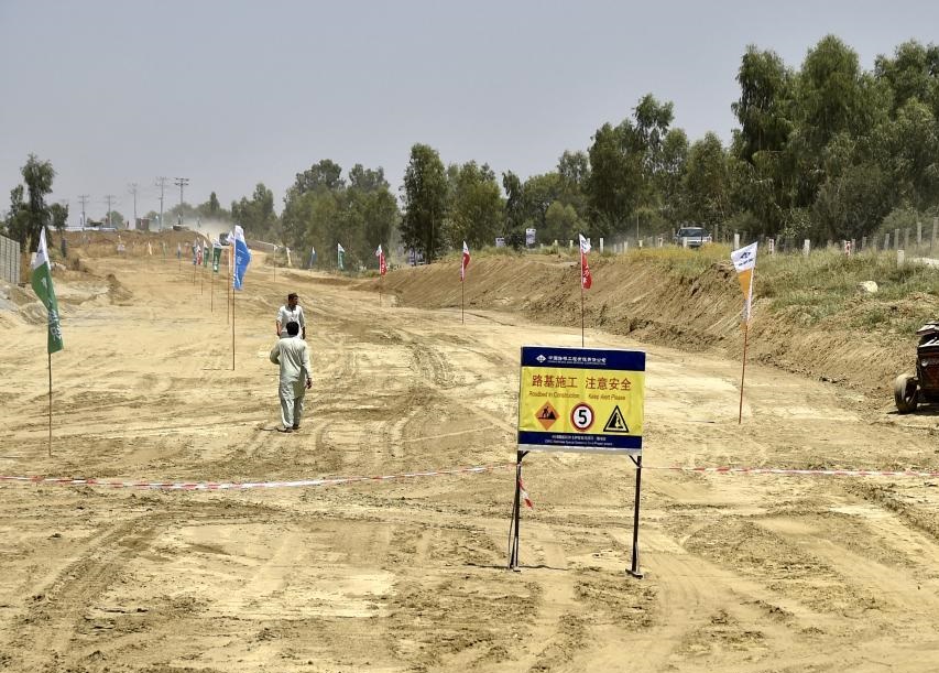 這是5月28日在巴基斯坦西北部開伯爾-普什圖省拍攝的拉沙卡伊特別經(jīng)濟(jì)區(qū)項目施工現(xiàn)場。