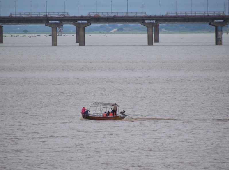 8月2日,在印度普拉亞格拉杰,人們駕船在水位高漲的恒河上行駛。