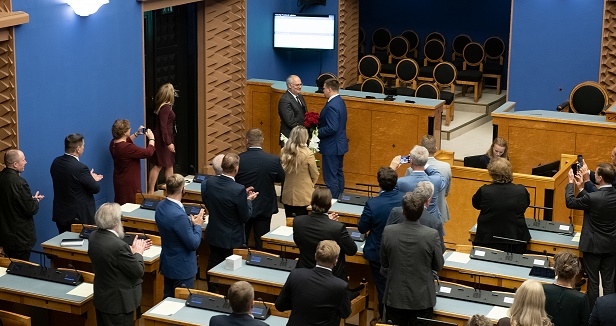 8月31日,在愛沙尼亞首都塔林,卡里斯(中左)在議會(huì)接受祝賀。
