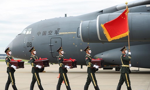 中國退役軍人事務部副部長常正國率中方交接代表團出席儀式,韓國國防部次官樸宰民率韓國送還中國軍人遺骸代表團出席儀式。中韓雙方代表現場簽署交接書,確認交接109位在韓中國人民志愿軍烈士遺骸及相關遺物。中國駐韓國大使邢海明為志愿軍烈士棺槨覆蓋國旗,中方舉行悼念儀式,中國人民解放軍禮兵護送烈士棺槨登上解放軍空軍專機,烈士英靈將回到祖國和人民懷抱。