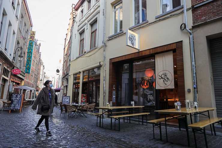 10月27日,行人經(jīng)過(guò)比利時(shí)布魯塞爾市中心的一家餐館。