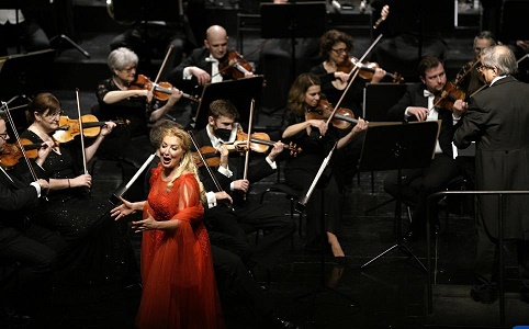 2月6日,在奧地利薩爾茨堡,奧地利女高音歌唱家維多利亞·瓦爾加(前左)在“中華風韻”新春音樂會上表演。新華社發(fā)(佟薇薇攝)
