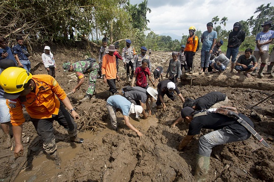 2月27日,印度尼西亞救援人員在西蘇門答臘省開展搜救工作。