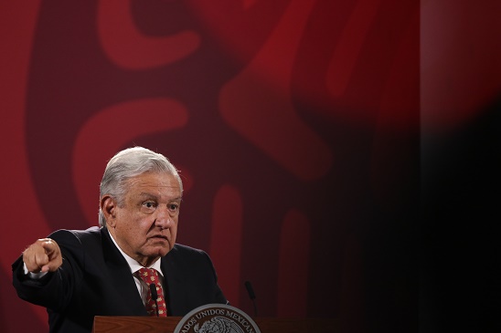 6月6日,在墨西哥首都墨西哥城國家宮,墨西哥總統(tǒng)洛佩斯出席新聞發(fā)布會(huì)。